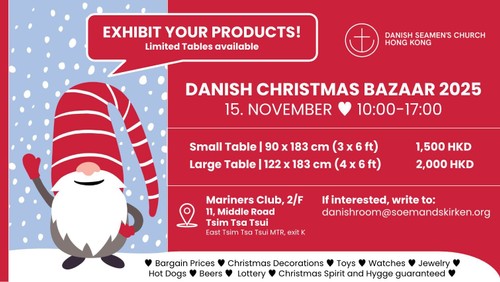 This year our annual Christmas Bazaar will be held in TST at Mission to Seafarers' new building The Mariners on the 15th of november.
